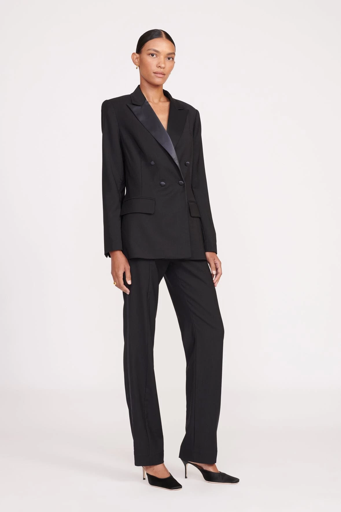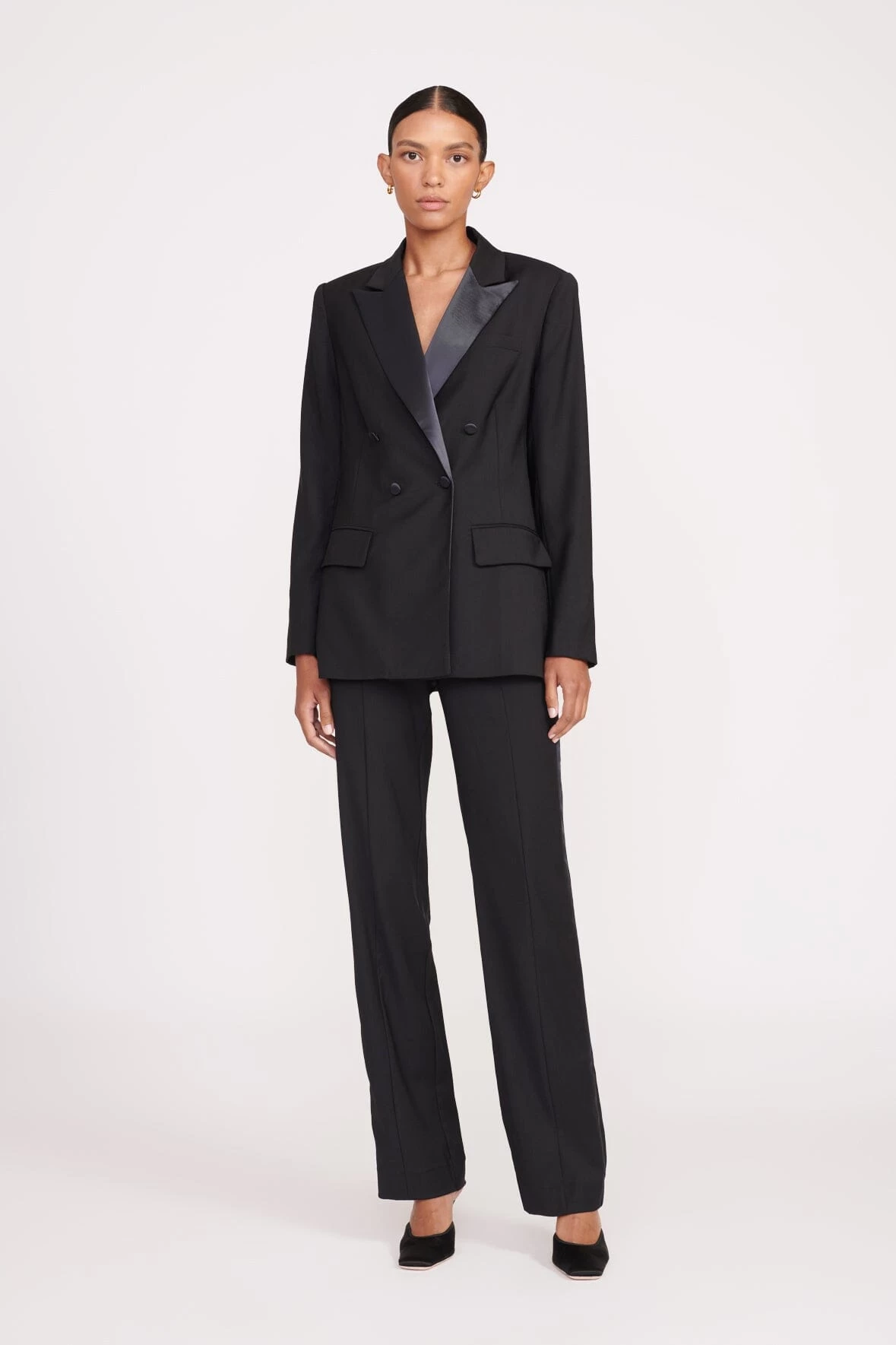 The Arch Tuxedo Blazer is a double-breasted blazer with classic contrasting satin lapels for a black-tie look. Pair with the Carnaby Tuxedo Pant for an update to the classic tuxedo.