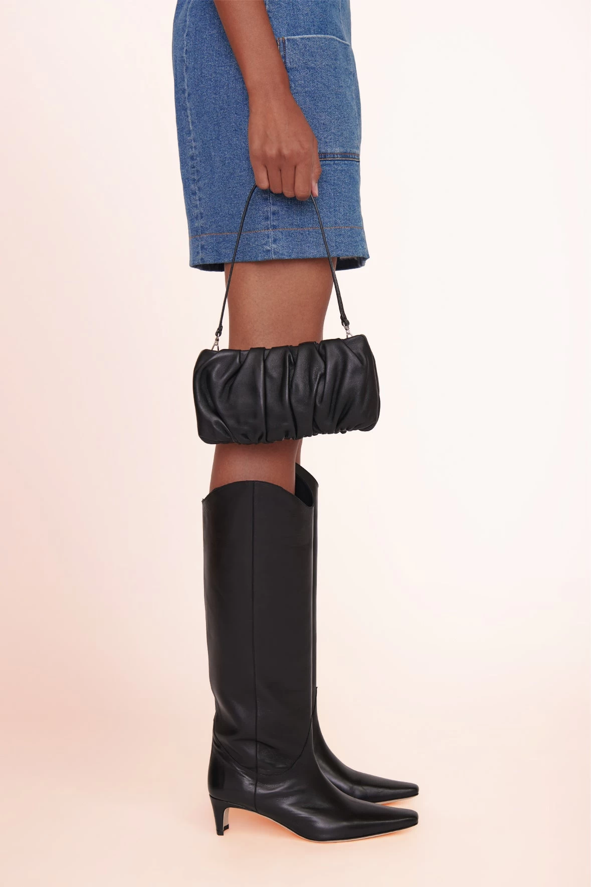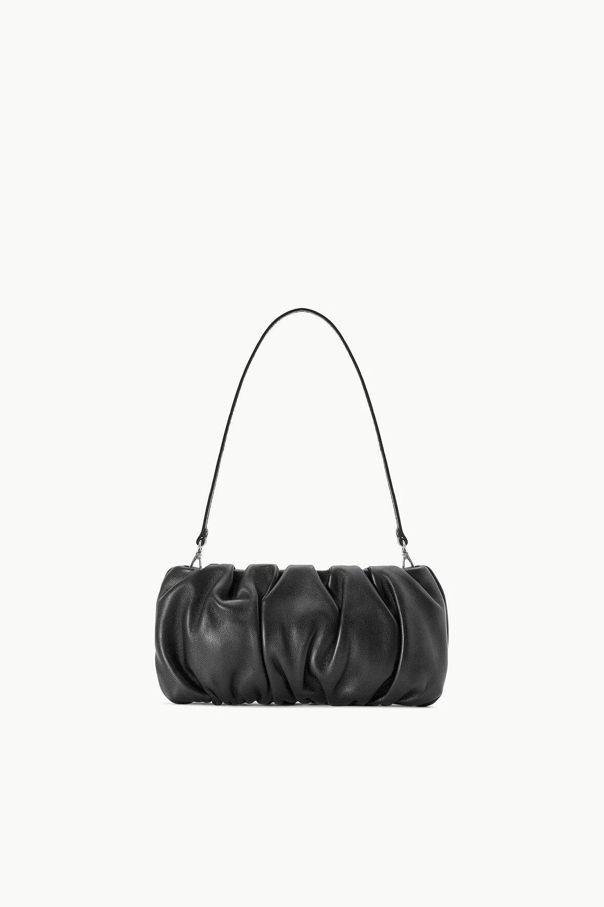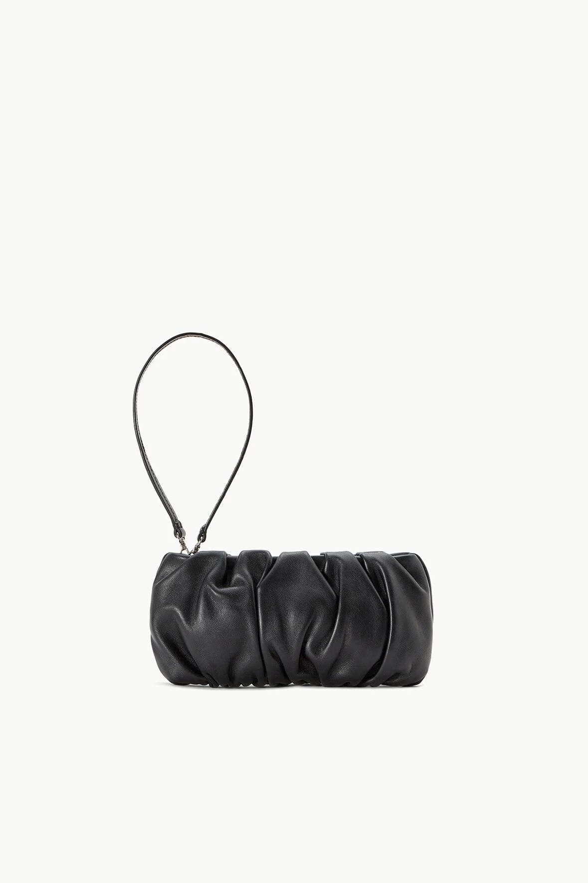 The Bean Bag is a small convertible clutch in soft leather. This style features a zipper closure, suede lining and removable shoulder strap.