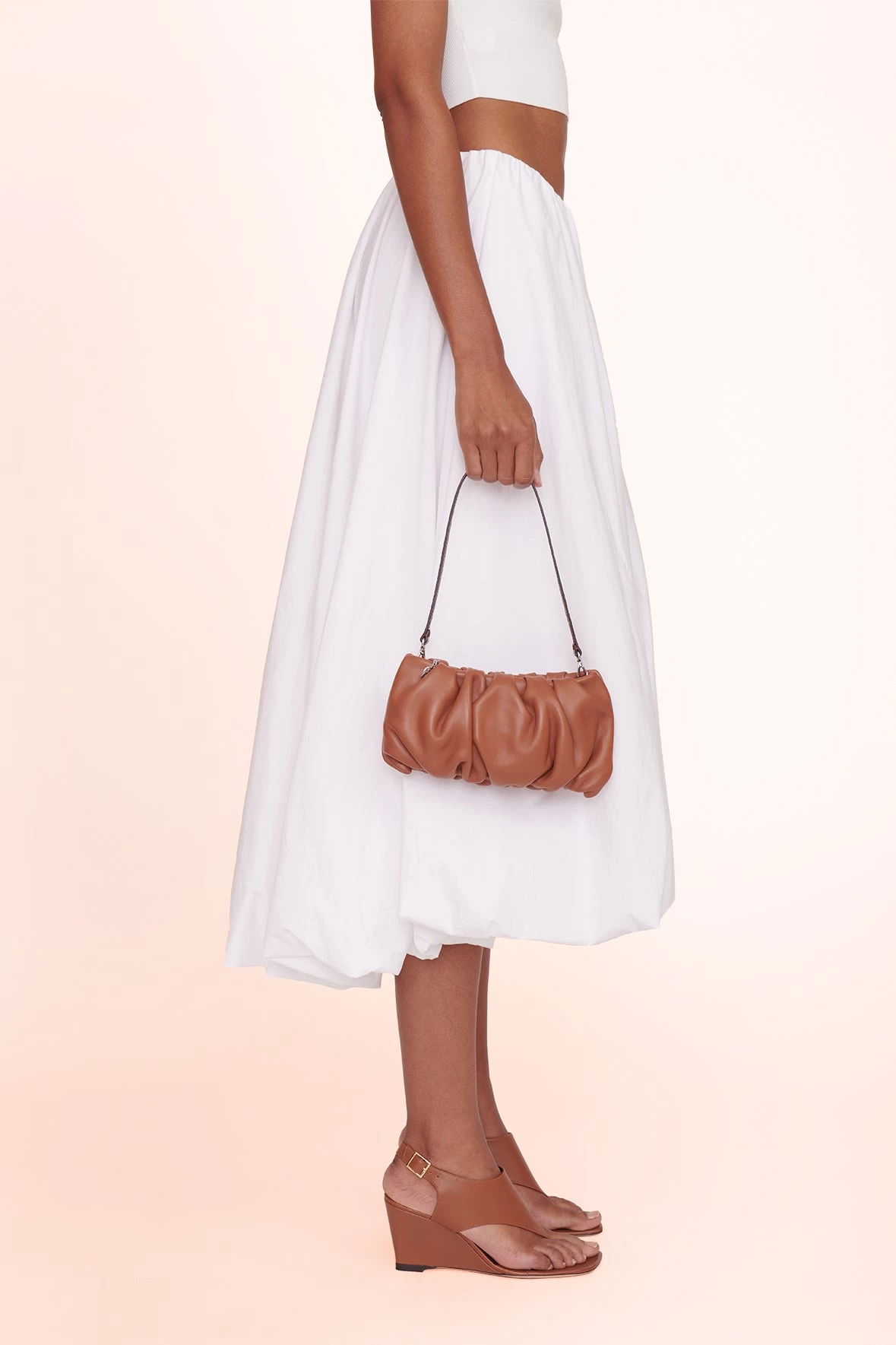 The Bean Bag is a small convertible clutch in soft leather. This bag features a zipper closure, suede lining and removable shoulder strap.