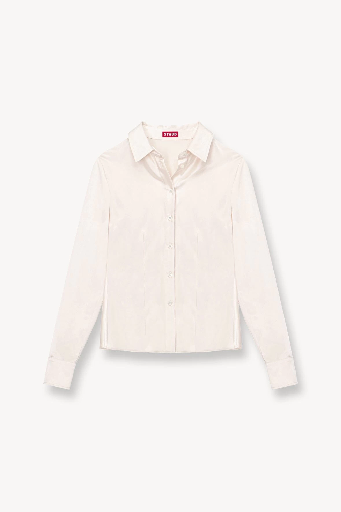 Dress the Bogart Top up or down. A classic button-down silhouette offers an easy, versatile piece in this updated satin fabric.