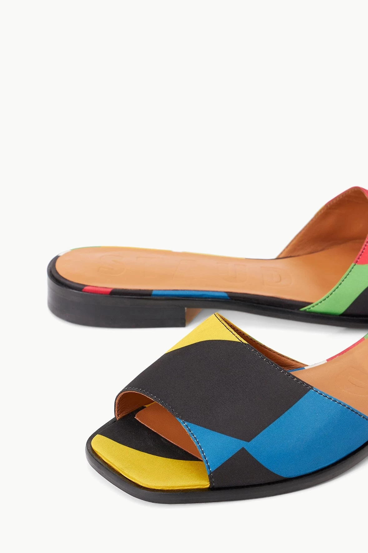 A slip on sandal with singular toe strap and low block heel. The Caspian is constructed out of the same fabric as our ready to wear and can be worn for a coordinating look.