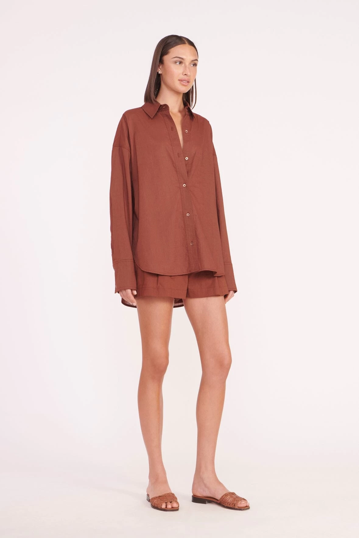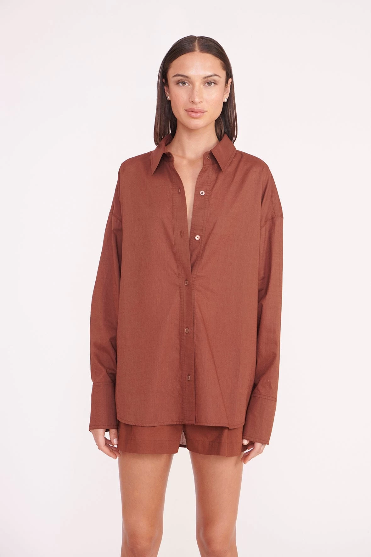 Constructed out of a cotton voile fabric, the Colton Shirt offers an oversized fit and can be won as a set when paired with the matching Zoey Short.