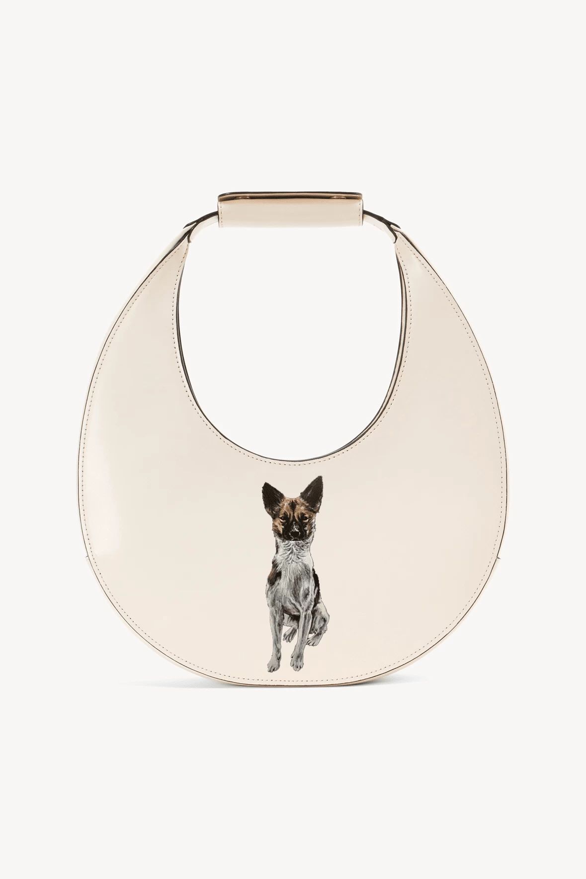 The Moon Bag features a curved handle with a removable STAUD embossed accent. Designed in a crescent moon shape with inner suede lining and a magnetic clasp closure to hold your essentials.