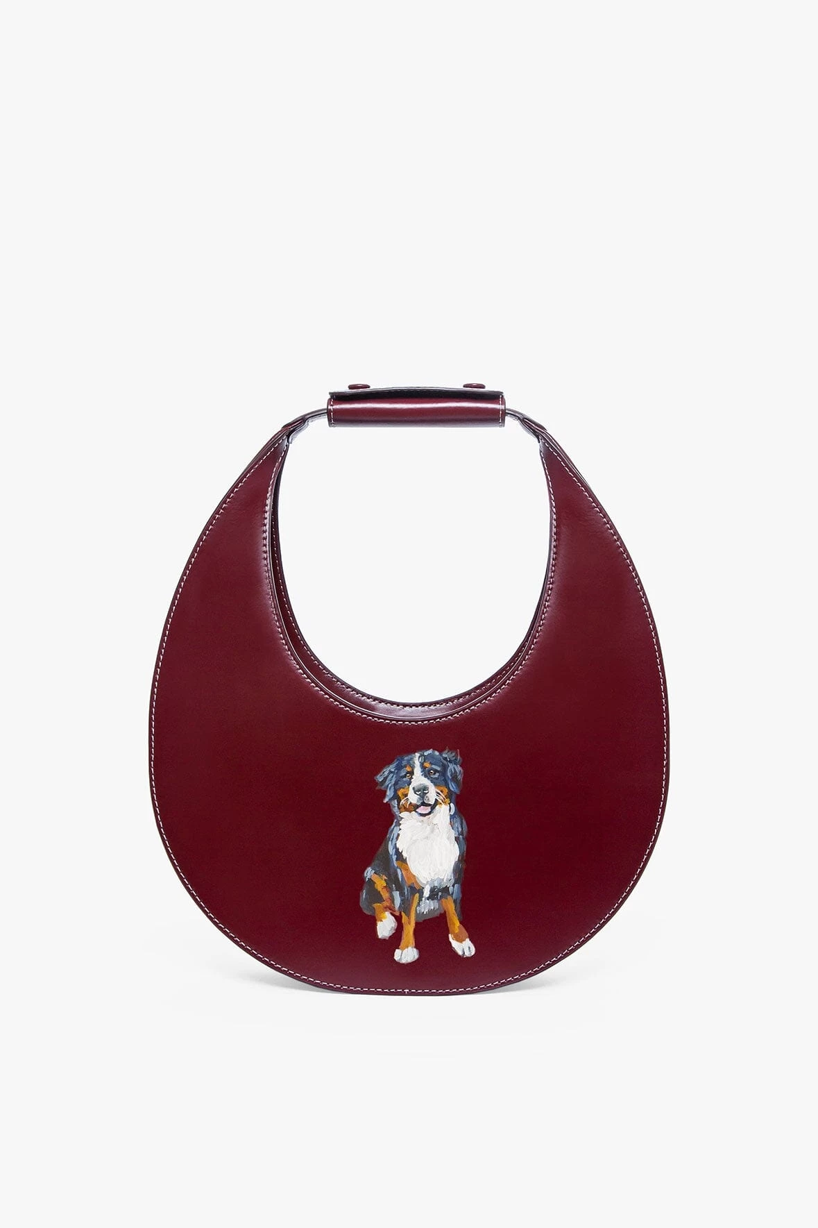 The Moon Bag features a curved handle with a removable STAUD embossed accent. Designed in a crescent moon shape with inner suede lining and a magnetic clasp closure to hold your essentials.