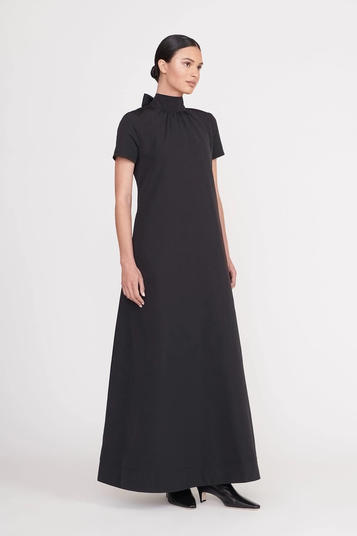 The ultimate statement dress. The Ilana is a maxi length gown with an a-line shape, open back and self-tie neck detail.