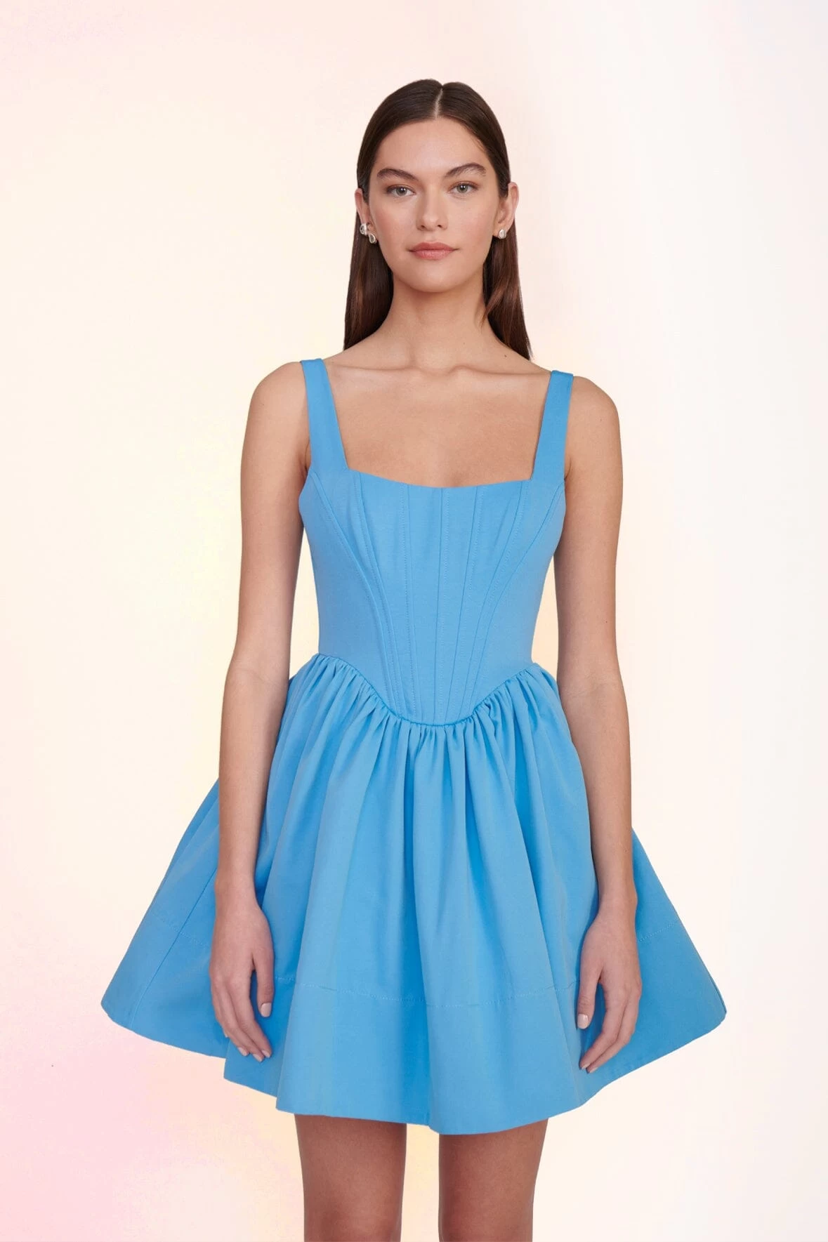 A sleeveless babydoll mini dress, this style features a tulle skirt and corset bodice fashioned after our signature Alice Top.