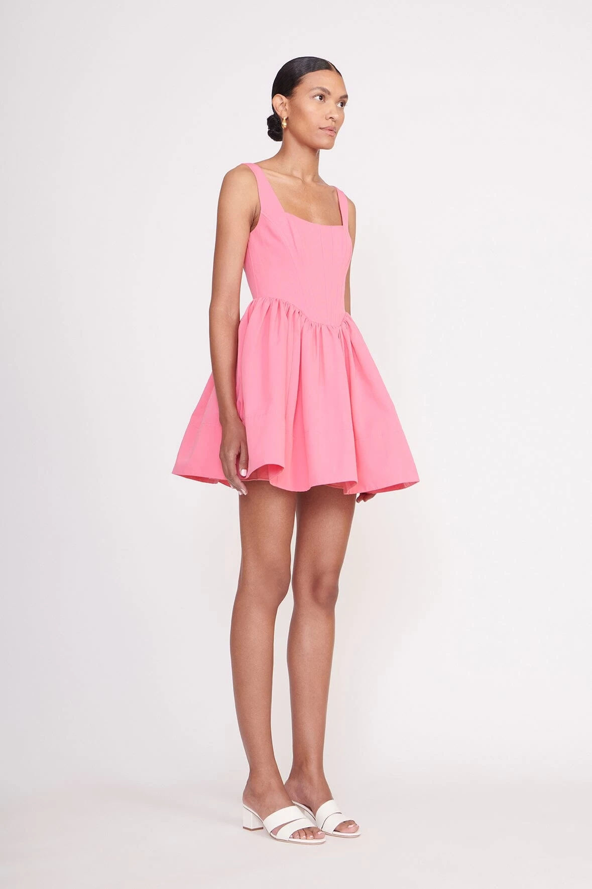 A sleeveless babydoll mini dress, this style features a tulle skirt and corset bodice fashioned after our signature Alice Top.