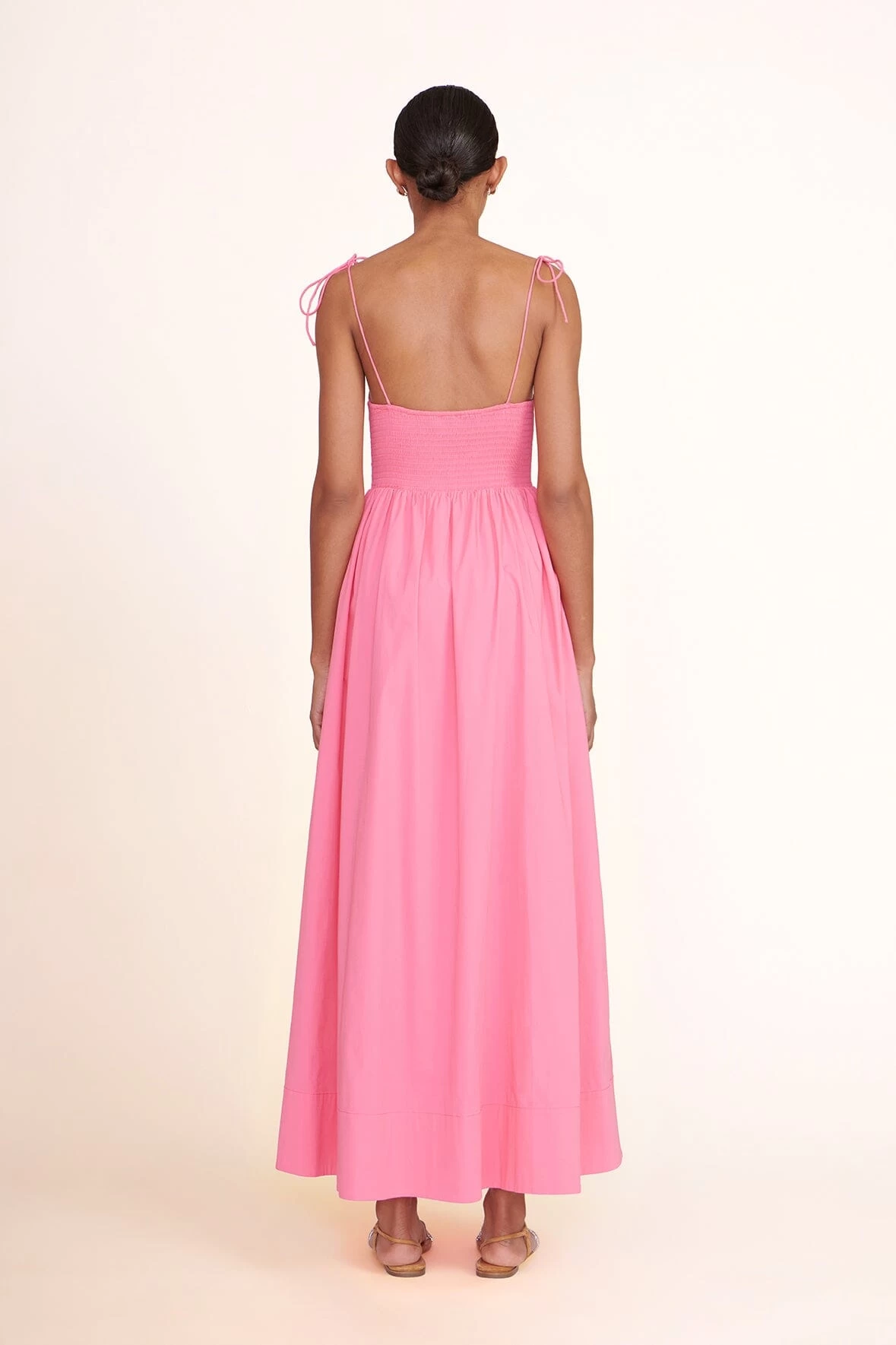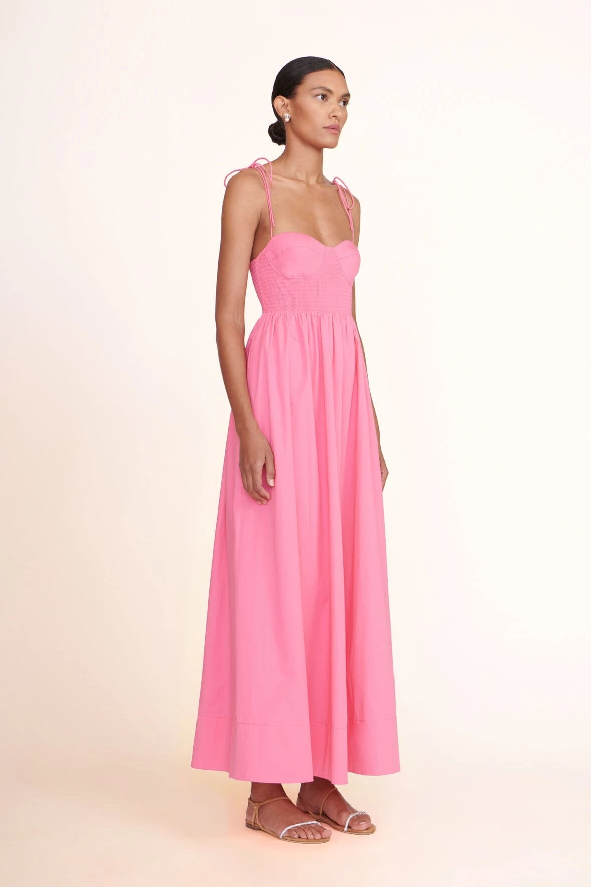 A flat sandal with tubular straps, the Laurel Sandal features a crystal cord toe strap and suede ankle strap.