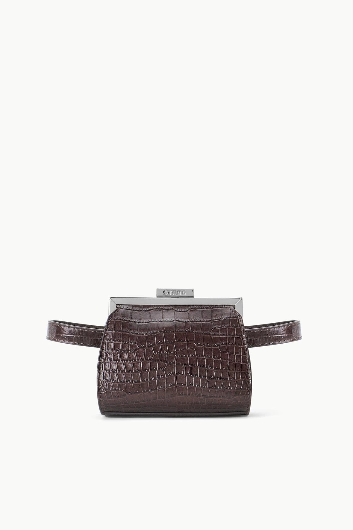 Small frame bag can be worn as a belt or converted into a shoulder bag with its non-adjustable alternate strap. The Lennon features metal feat for added protection and interior pocket with removable mirror.