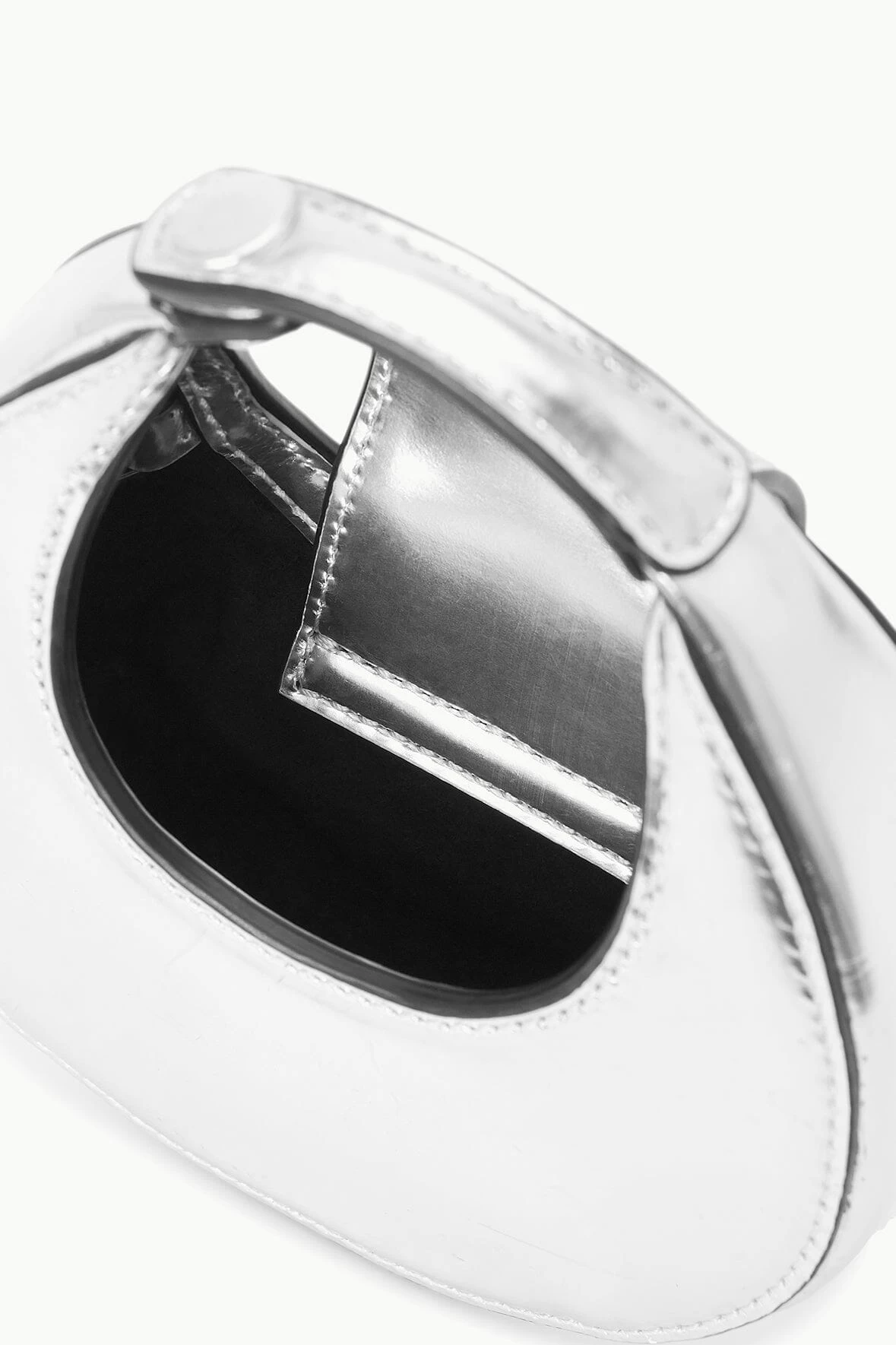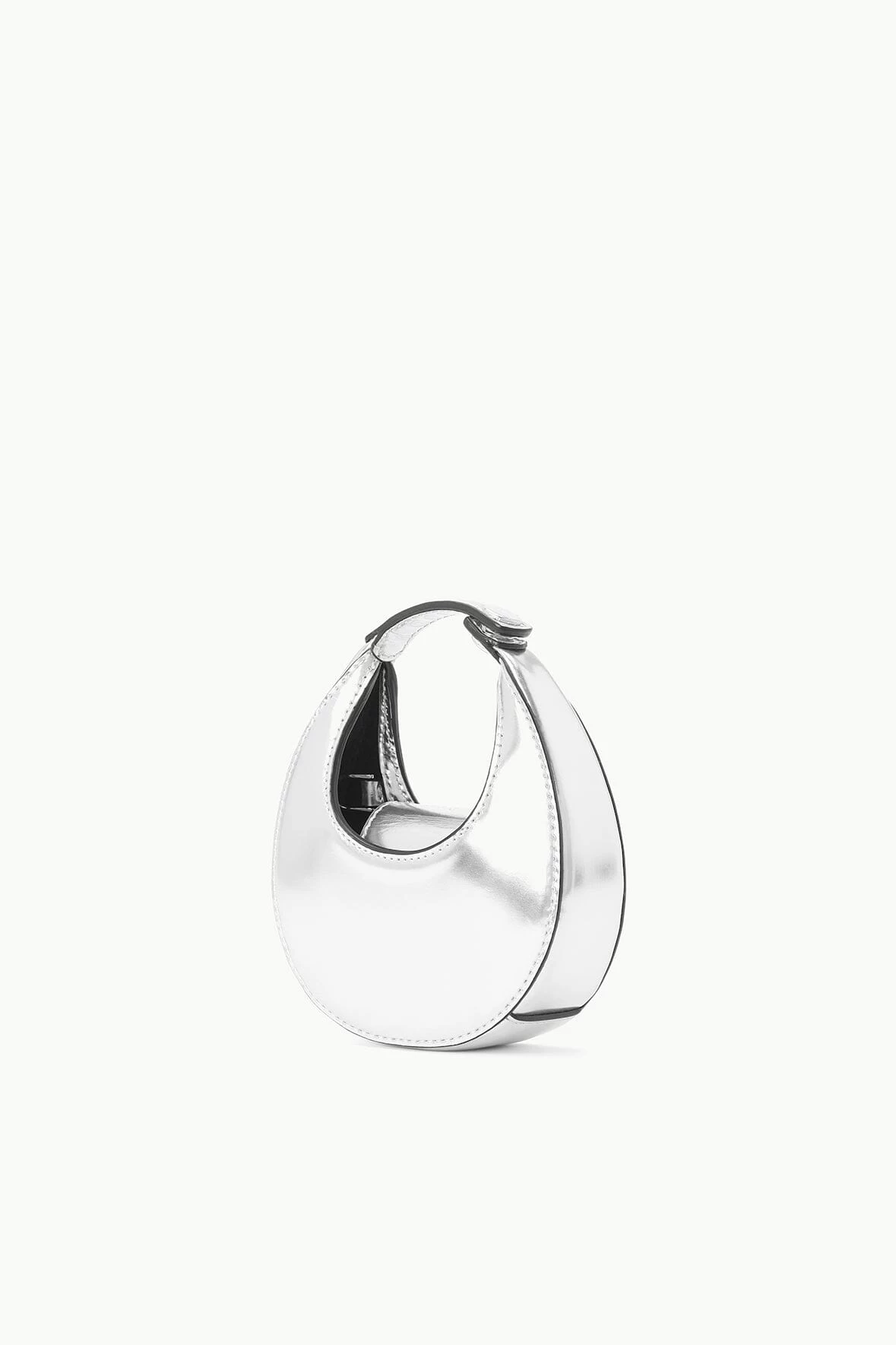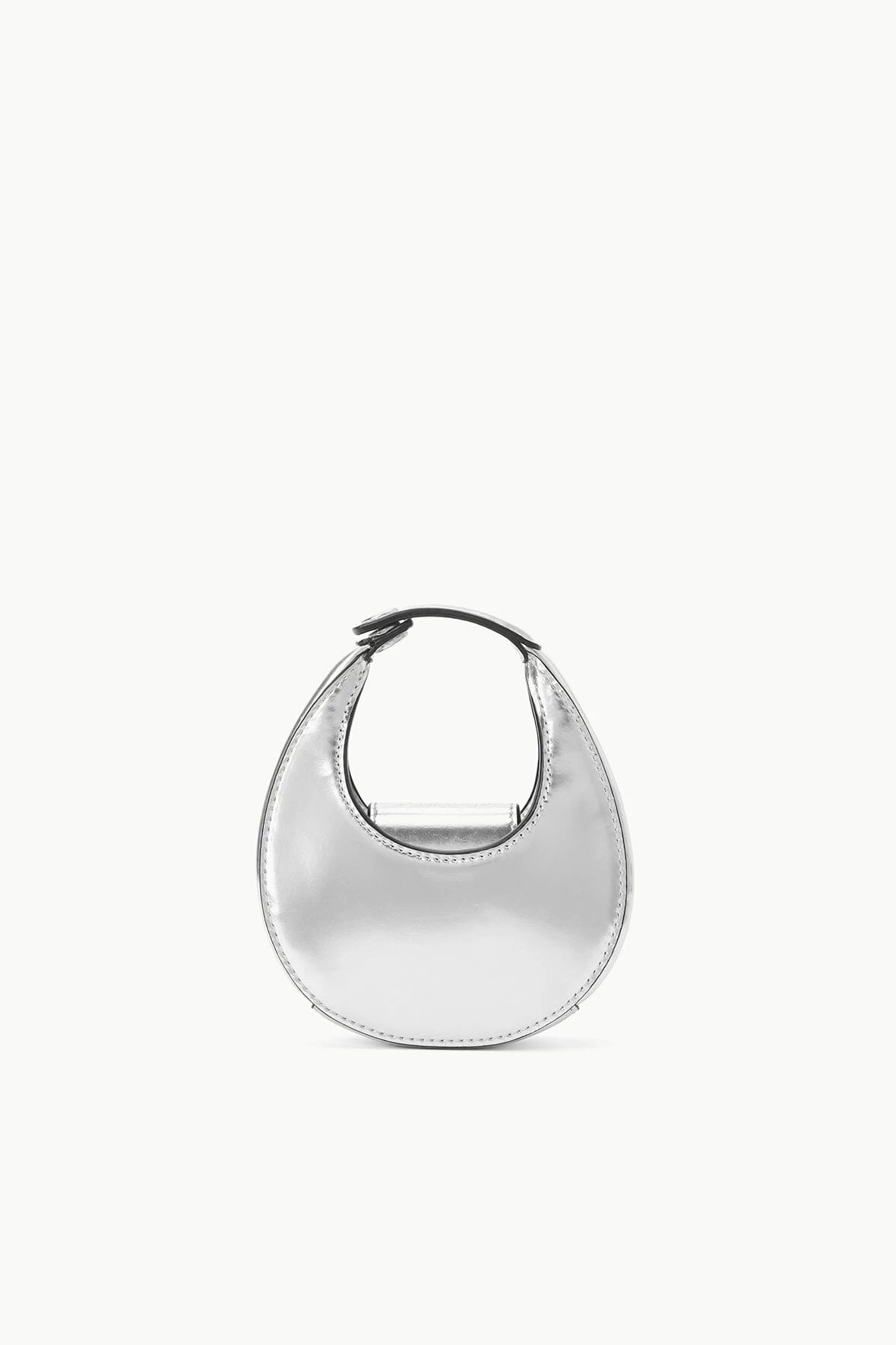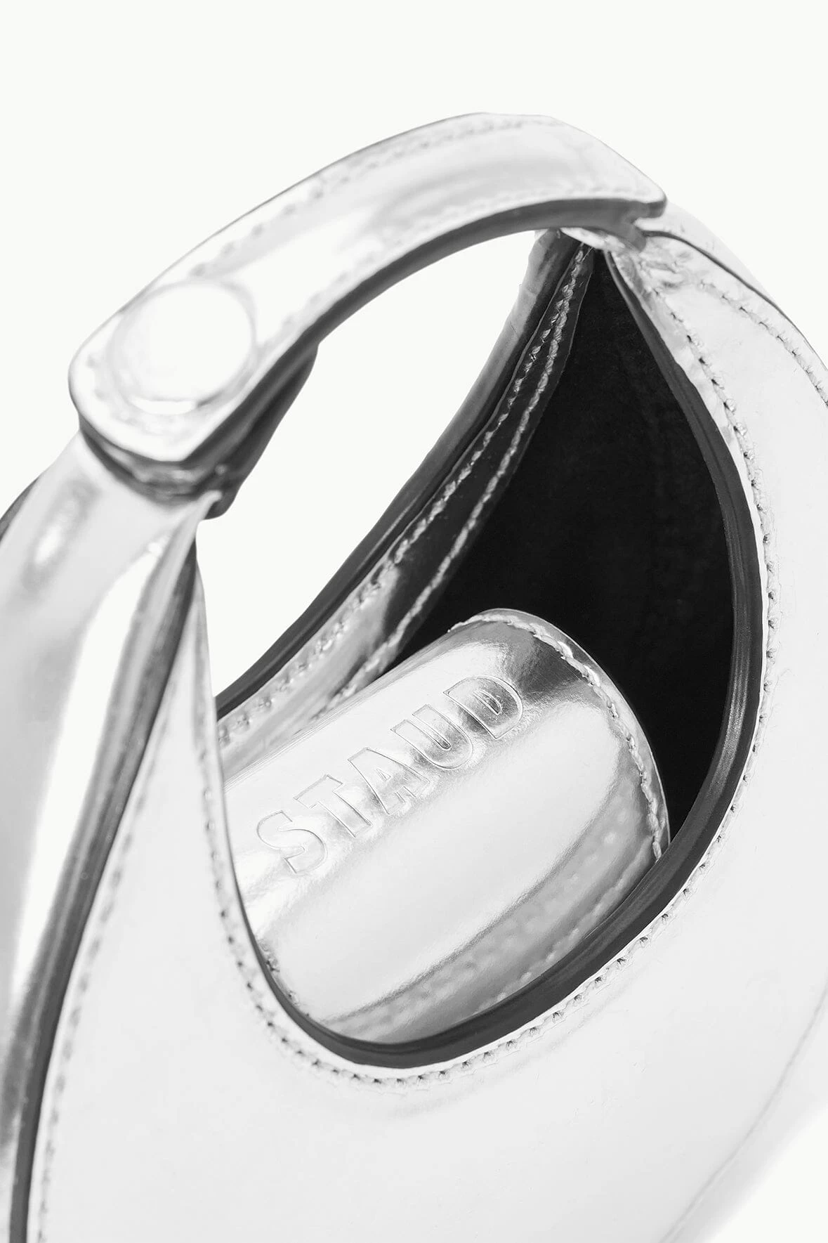 Introducing the smallest addition to the Moon family, the Micro Moon is a leather bag featuring a magnetic closure, a button snap detail at the handle and a removable crossbody strap.