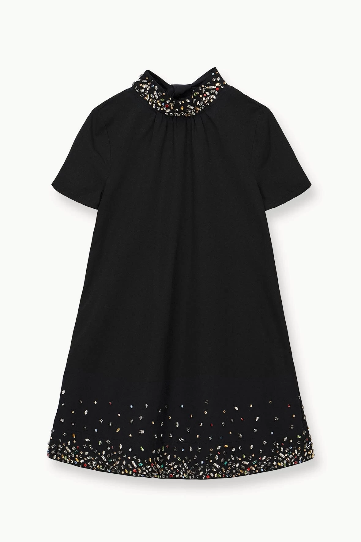 An embellished update to our best-selling Mini Ilana with crystal detailing at the neck. The Mini Ilana features a-line shape, open back, and self-tie neck detail.