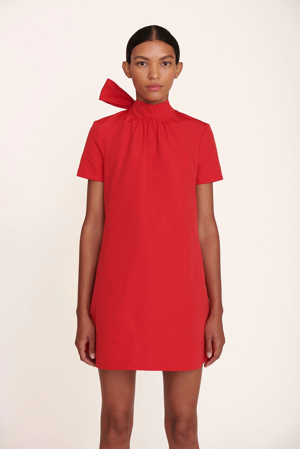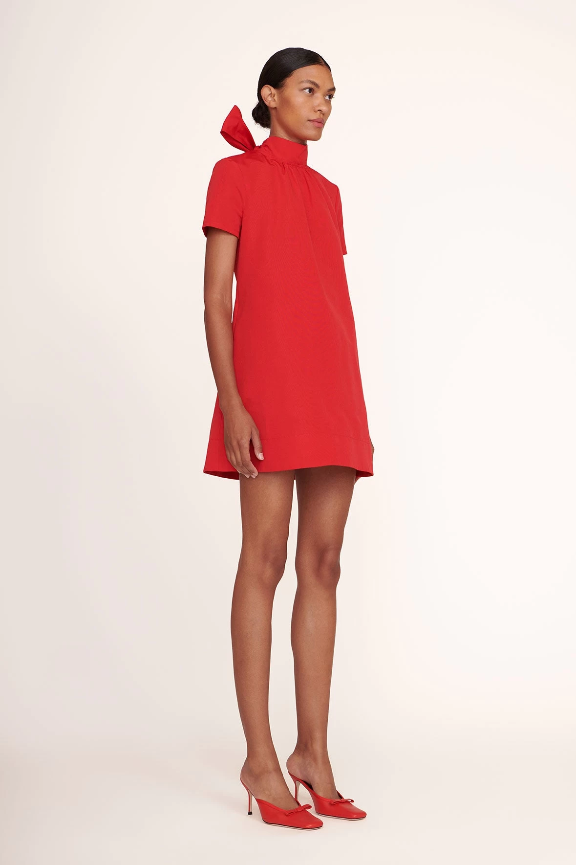 The Mini Ilana is a high neck mini dress with a scoop back and functional, self-tie bow collar. Constructed out of grosgrain fabric, this dress is the perfect statement piece for any occasion.