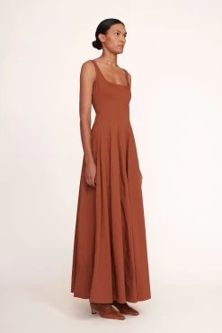 The Nadja Heel is an open toe leather slingback stiletto with a cross over strap and silver STAUD logo lettering detail at the ankle.