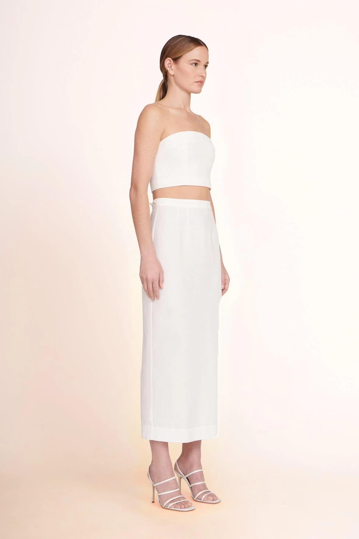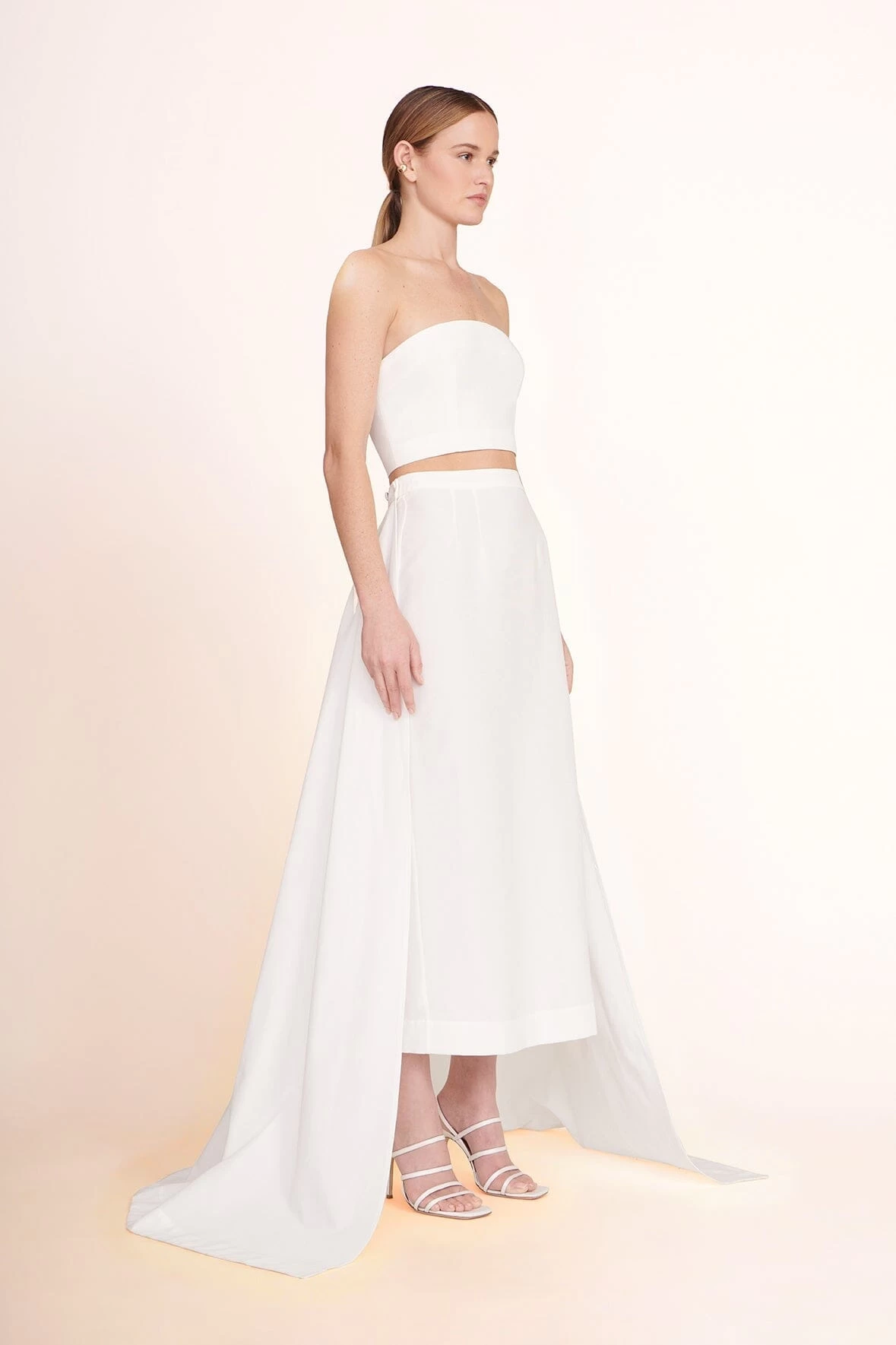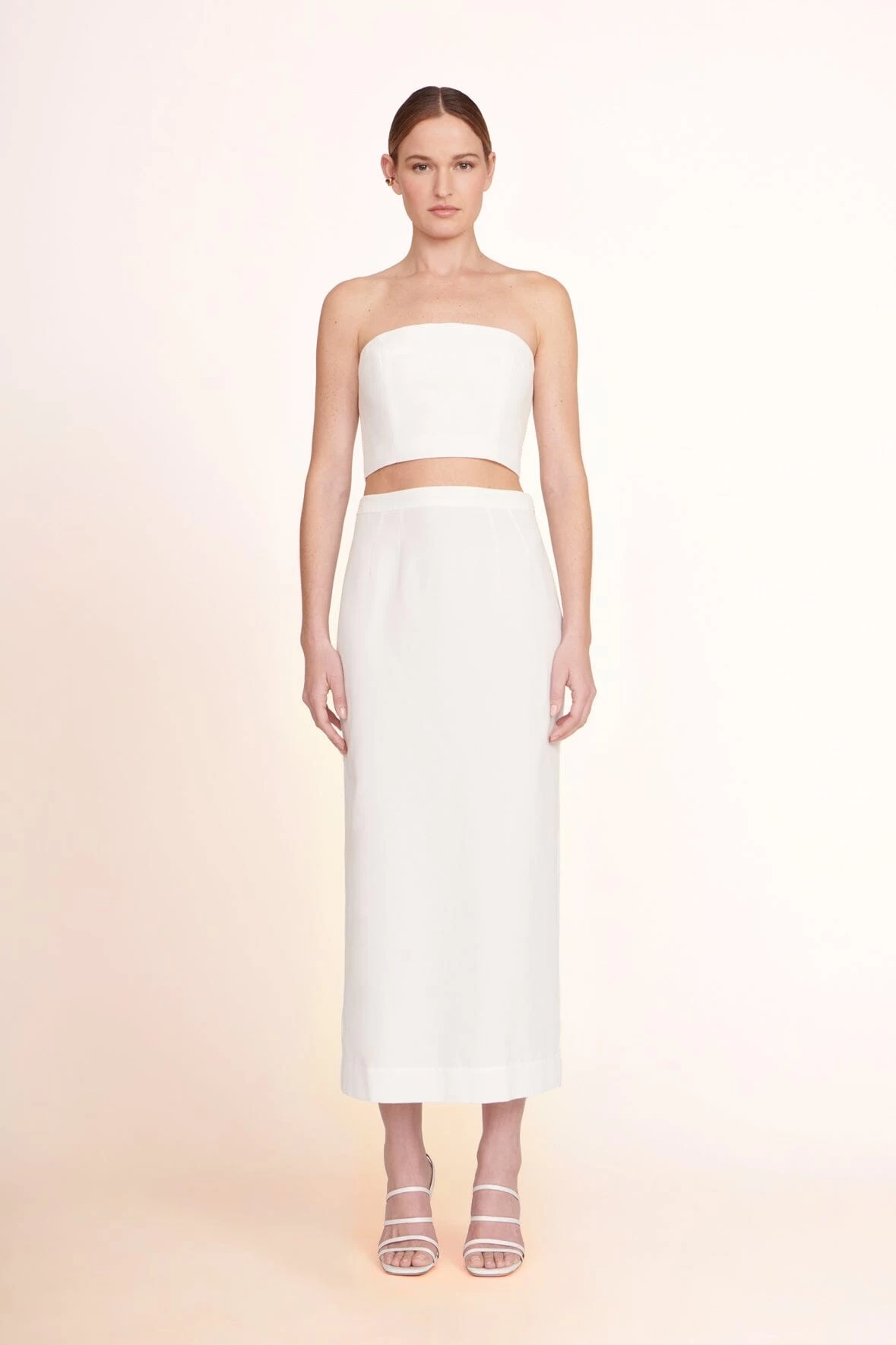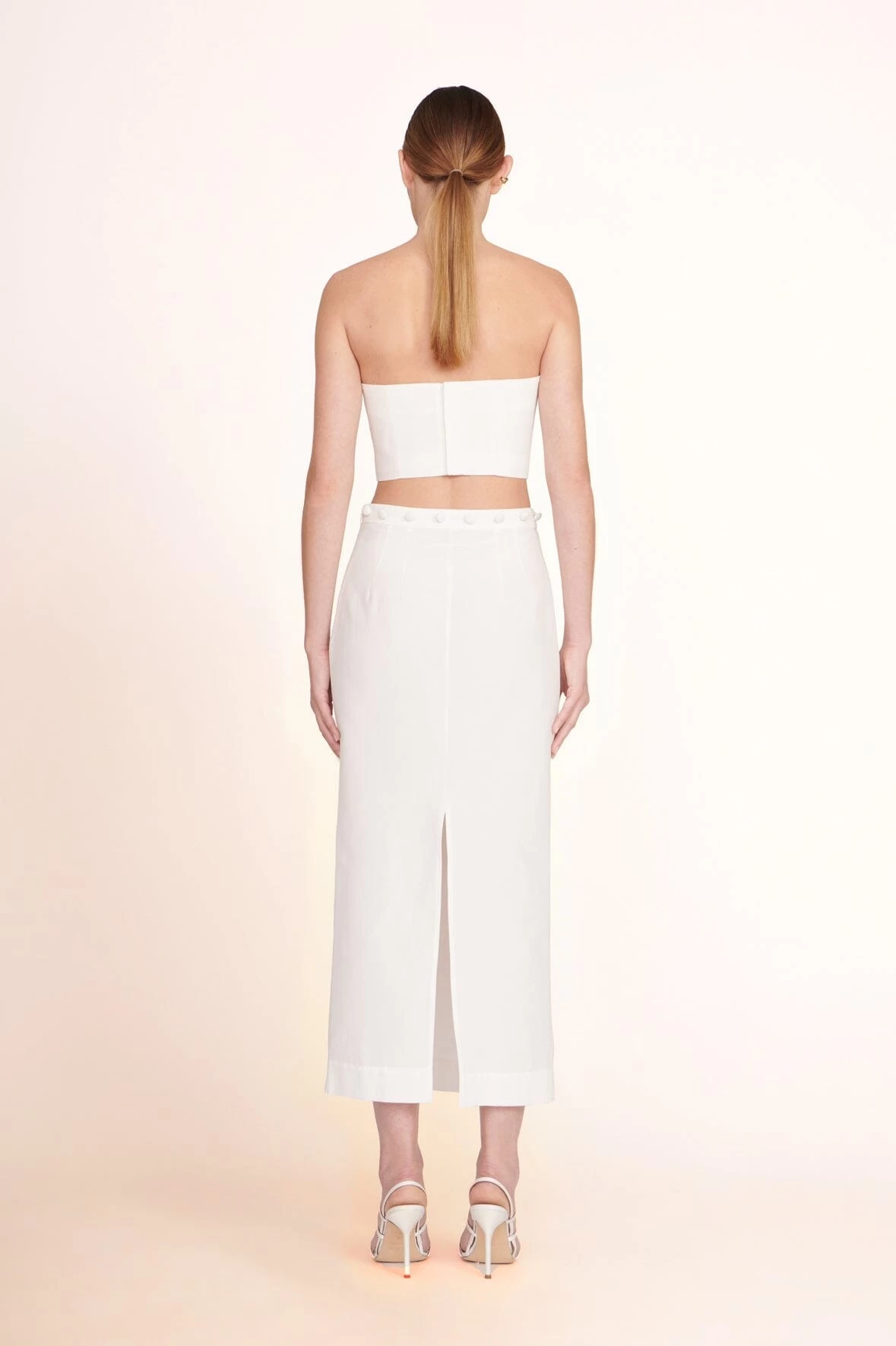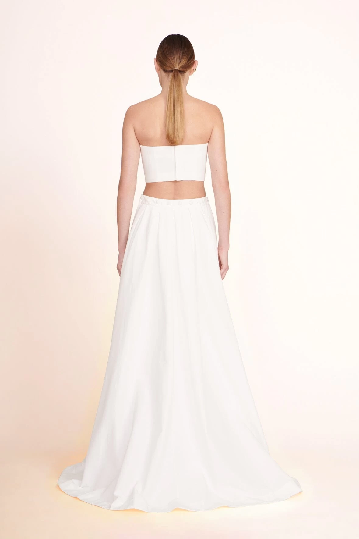 The Nyla Top is a grosgrain cropped tube top with a hook eye closure in the back.