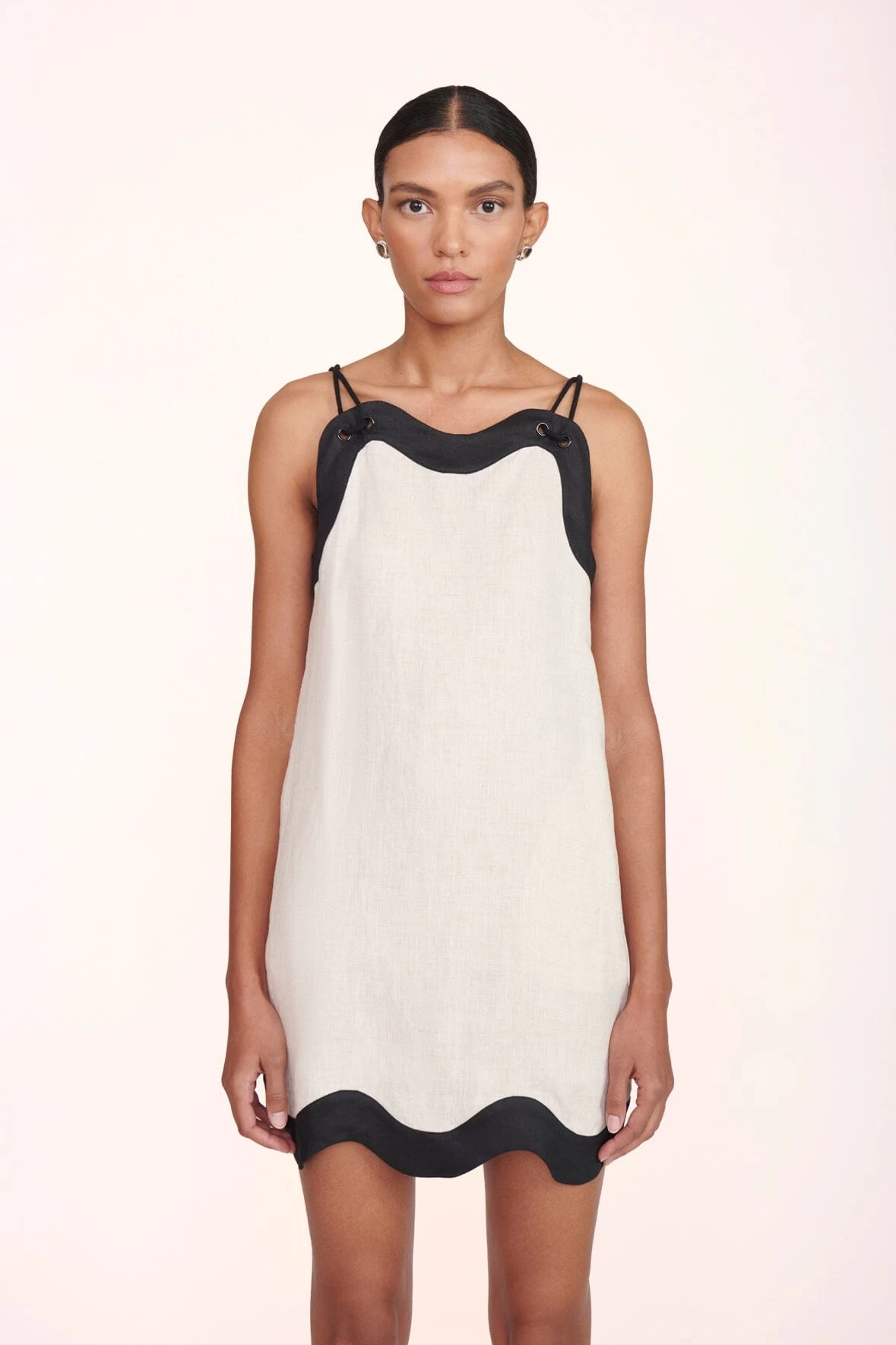 A sleeveless linen trapeze dress, the Renata Dress features contrast wiggle detail and natural rope straps.