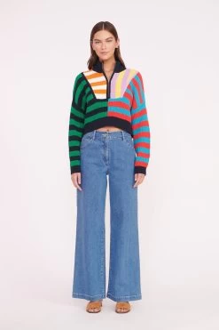 Our favorite cardigan, the Cargo Sweater, is updated to support your favorite NFL teams. The NFL STAUD Cargo Sweater is made out of our stretchy, comfortable compact rib knit fabric, and can be worn buttoned or unbuttoned. This special capsule features our signature color blocked pattern and a NFL team logo on the back.