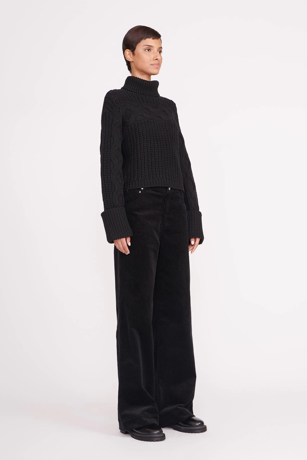 A chunky knit turtleneck with cropped, boxy fit. The Vernacular Sweater features a honeycomb cable stitch detail and oversized cuffs.