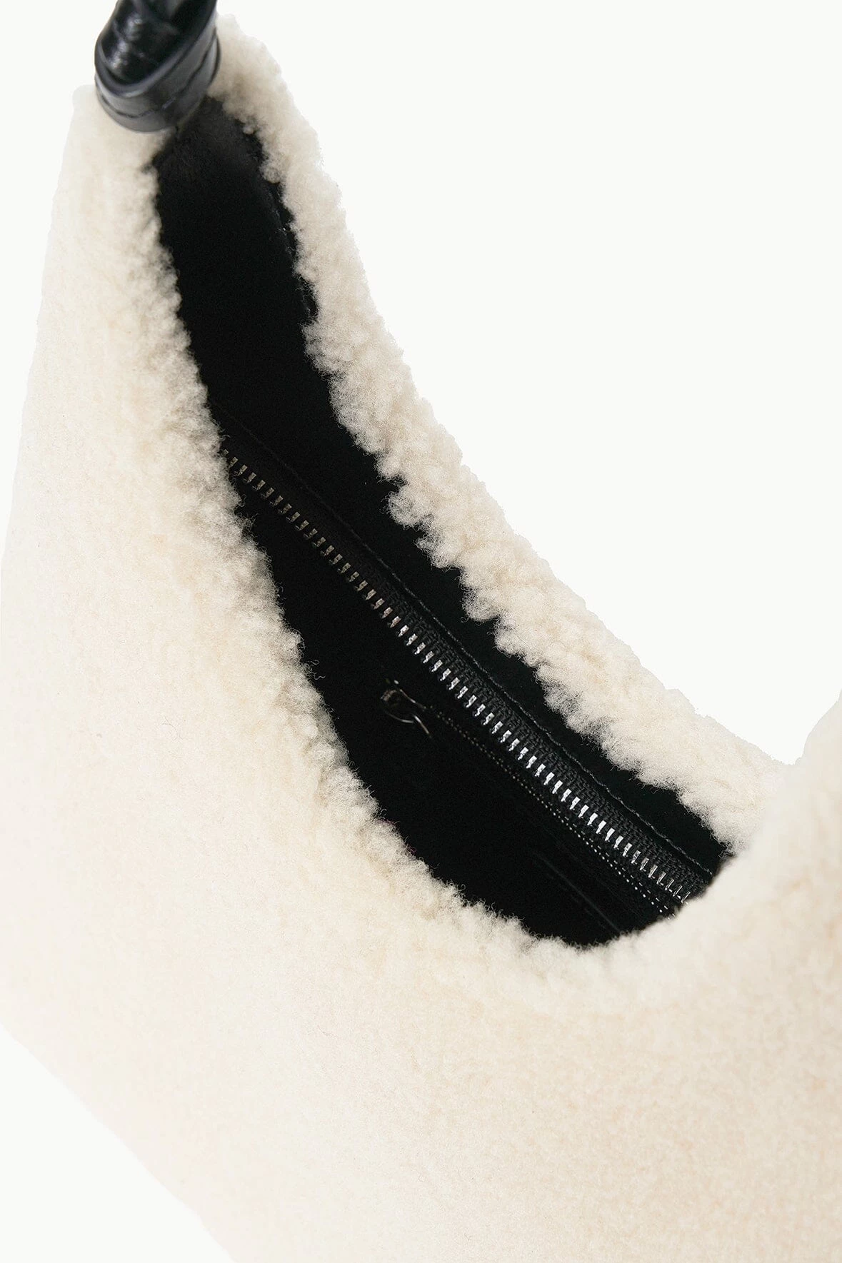 The Winona Shoulder Bag is a new everyday handbag silhouette available in all-over shearling. This style features our signature knotted leather handle and a zip closure.
